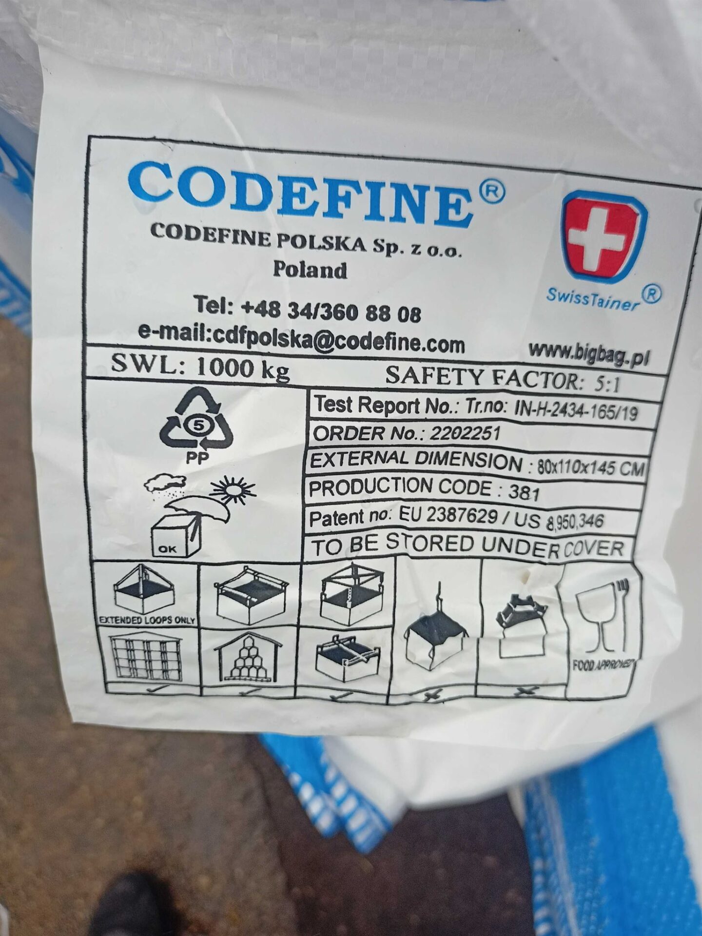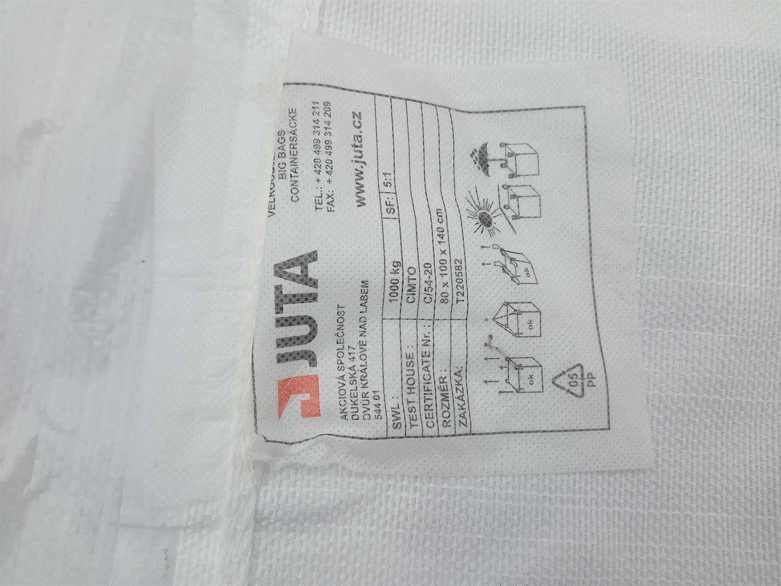 Pytel má ploché tkaničky na zajištění výsypu a násypu. Její šíře je 1cm