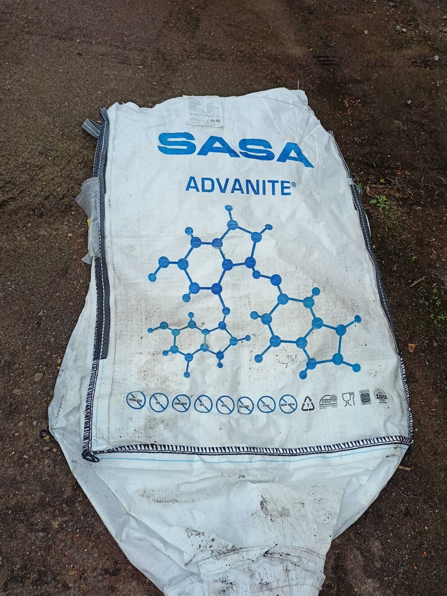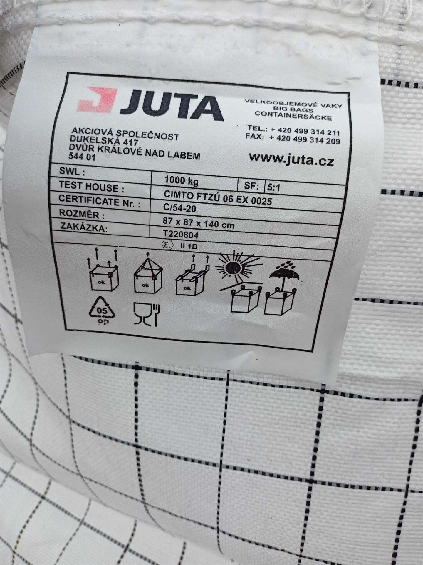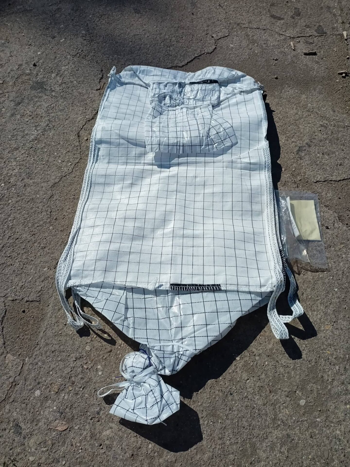 Pytel má ploché tkaničky na zajištění výsypu a násypu. Její šíře je 1,5cm