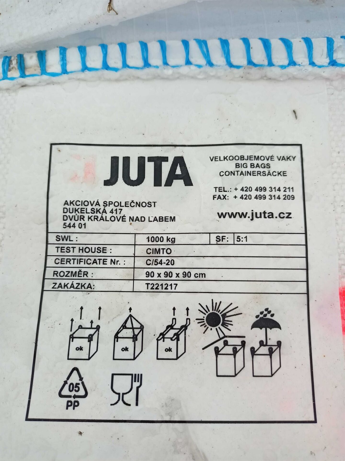 Pytel má plochou tkaničku na zajištění násypu. Její šíře je 2cm