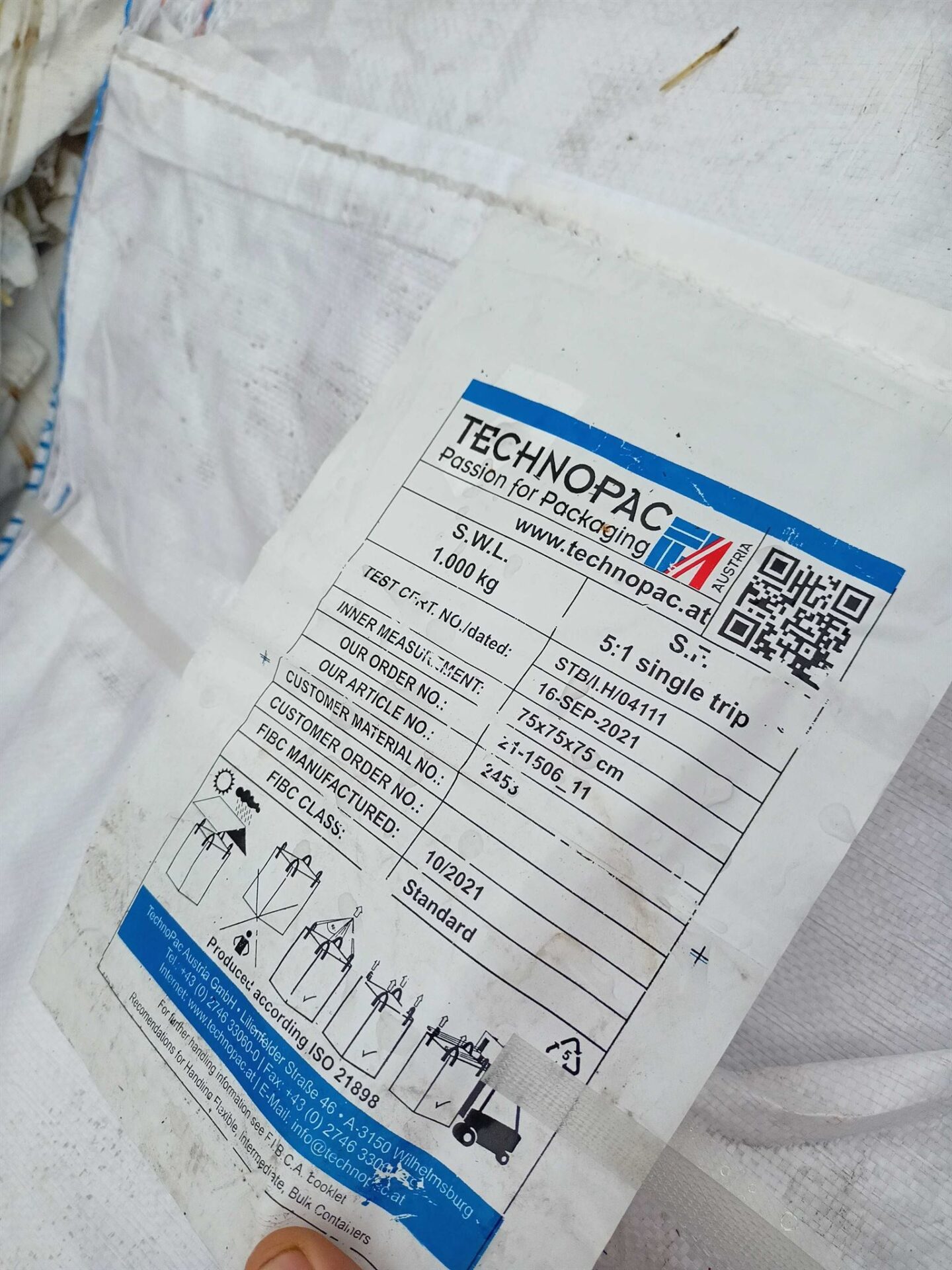 Bigbagy od prášku, 50 kusů balených na paletě.